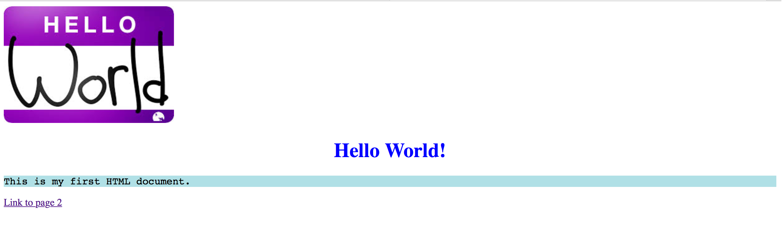 HTML allows us to add style to our pages internally, or inline, using HTML tags. We’ve already styled our pages a bit using the <h1> tag. <h1> designates preformatted text that is larger than the <p> or paragraph text. But, what if we want to add color or change the font on our page?