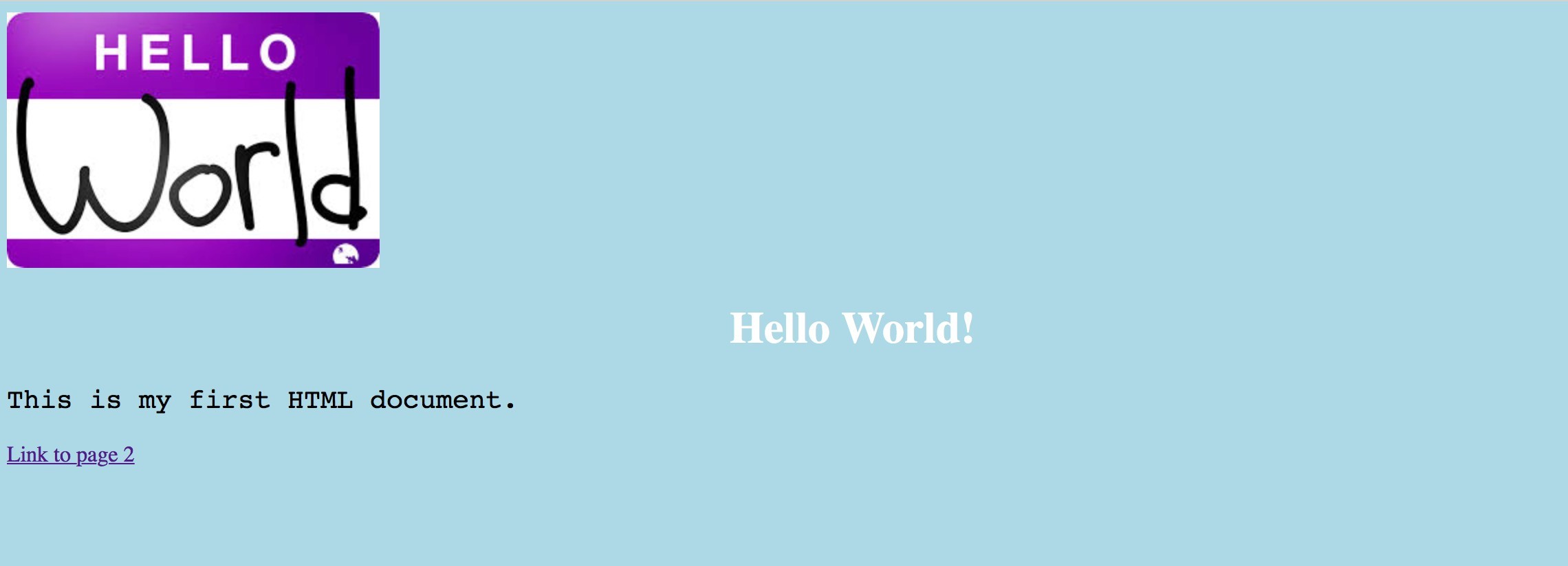 However, if you click on the link to page2.html, it will look the same as it did before. This is because we need to link the stylesheet to each of the pages. Add the same <link rel="stylesheet" type="text/css" href="mystyle.css"> to page2.html. Now both pages should share the same style.